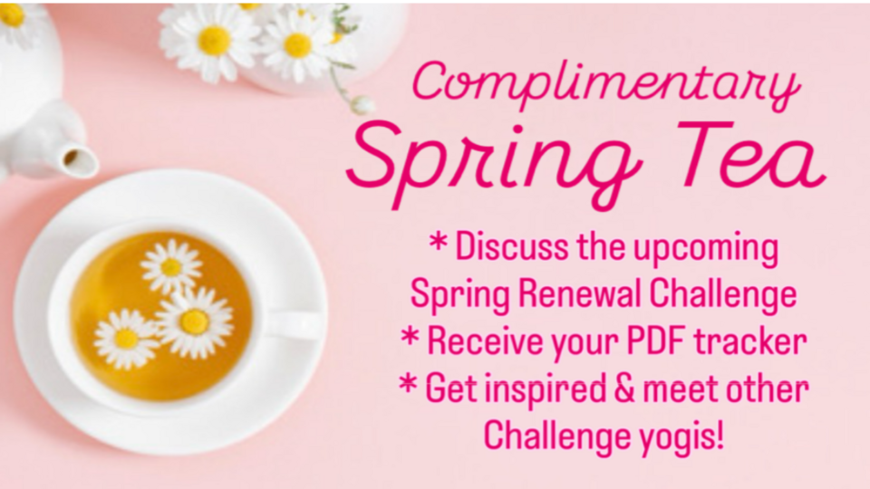 For your convenience, the tea times are offered after the Sun/Mon/Tues classes. You do not need to take the yoga class to join us - the tea is complimentary. You are also welcome to join us if you are curious about the challenge, and not ready to sign up - there is no pressure to do so!